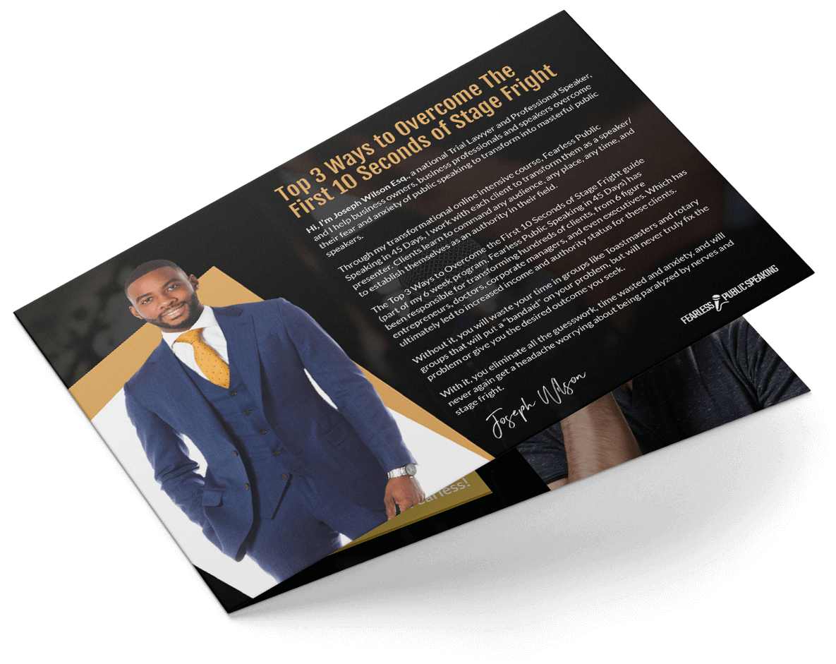 A national Trial Lawyer and Professional Speaker , and I help business owners and business professionals overcome their fear and anxiety of public speaking to transform into masterful public speakers.